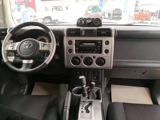 丰田FJ酷路泽在尾部的保险杠上设置了的踏板。仪表板采用简单而有力的直线条,粗壮的水平线条和垂直线条相交,形成了平面与弧线融合的美感立体效果,给人一种时尚而粗犷的感觉。