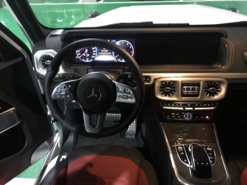 G19款奔驰G500内饰部分相比上代车型有了明显改变,几乎是天翻地覆的变化,连小编这种对肌肉车无感的都被其内饰所震撼。科技感有了提高。真皮方向盘采用了金属材质按键,手感非常的不错,另外它还配备了换挡拨片,不仅提高了驾驶便利性,而且越野乐趣也有了增加。排挡杆跟家族其他车型一样,终于变成了怀档模式。双12.3英寸显示屏是整个中控台上最为抢眼的设计之一,它们的出现,极大的提高了内饰科技感,并且和银色材质搭配和谐。内饰的美学设计优秀,和前几代相比,可以说是从土豪风往时尚圈成功转型。中控台中央还配备了三把差速锁,由此可见他的越野能力和脱困能力都很有保障。柏林之声音响出现在了车内,车辆的不同位置都安装有银色扬声器,带来了很有质感的立体声效果。