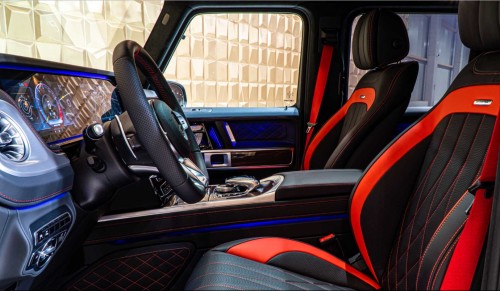 内饰设计:而进入内饰,可谓是这代全新奔驰G级 (配置|询价)最令人眼前一亮的地方,它可以说是一改上代沿用了将近10年的内饰风格,在整体的视觉档次感与豪华度上有了质的飞跃。当然,作为G级家族中一款高度定位的车型,AMG G 63在内饰的配置和用料上自然也不含糊,可以说它的整体豪华度与奔驰S级 (配置|询价)、甚至迈巴赫S级不不相上下了。