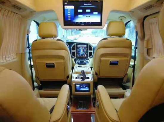 奔驰威霆改装高顶(七座)商务车配置单:●棕色座椅 双拼内饰● 双电池供电系统● GPS全球卫星大屏导航系统带倒车影像● 冷暖气分离出风口● 车载Wi-Fi、行车记录仪● 12升压缩机冰箱、电视盒子● 进口韩国绒整车包覆● 桃木方向盘●5.1健伍音响系统● 整车德国工艺桃木制作● 车载触控屏中控系统● 日本建伍主机● 24寸上半高清电视●氛围灯。
