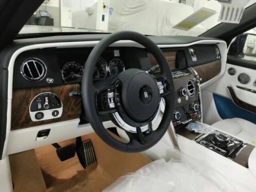 内饰方面,该车采用了劳斯莱斯家族式的设计,新车采用了经典的三联仪表盘,同时还将配有可收起的10.2英寸中控屏,轻触车门把手上按键就可以电动关闭。库里南内部用料奢华,中控台被大面积实木覆盖,三幅式方向盘依旧硕大。