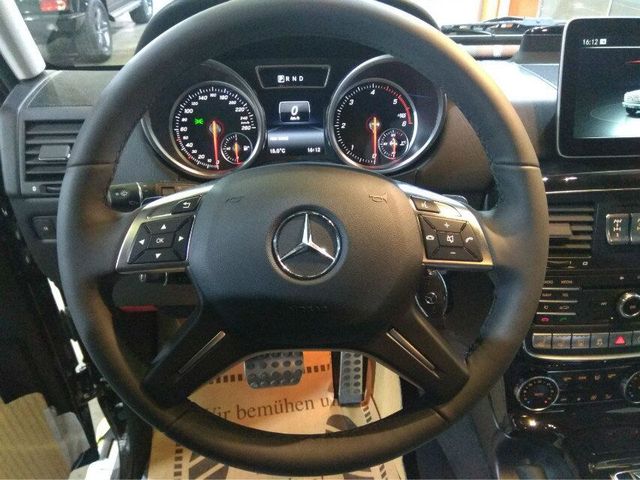 18款奔驰G350整体造型简单经典,线条简洁有力,具有典型的越野车特色,奔驰G350的仪表盘采用双炮筒式设计,中间行车电脑采用液晶显示,直观而且用户体验更好,四幅式方向盘是奔驰家族风格,真皮包裹的方向盘手感非常好,握感舒适。