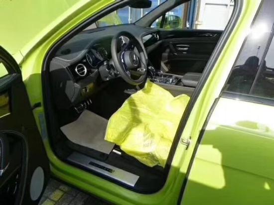 车型颜色备注18款宾利汽油添越V8镭萤黄Radium/黑接受预订配置:天窗、对比缝线、车身同色、宾利刺绣、城市包、钢琴烤漆饰板、后娱乐、电尾门、黑色套件、后隐密窗、21轮