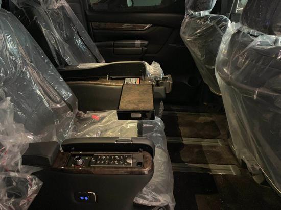 高级真皮+合成皮、木纹内饰、前排烟灰缸、前排座椅加热、带中央扶手,三各头枕、驾驶席电动座椅,第二排座椅多向头枕,记忆功能,加热通风功能、电动六向可调前排座椅,带电动可调角度扶手、8向电动调节驾驶席,带可调角度扶手、智能防夹电动尾门定速巡航、智能钥匙,一键启动、彩色多功能仪表盘、前排乘客12V插座、前排及第二排阅读灯、智能防夹电动侧门、第二排座椅可收纳小桌板、彩色顶篷照明、中央扶手带储存空间、JBL顶级音响。
