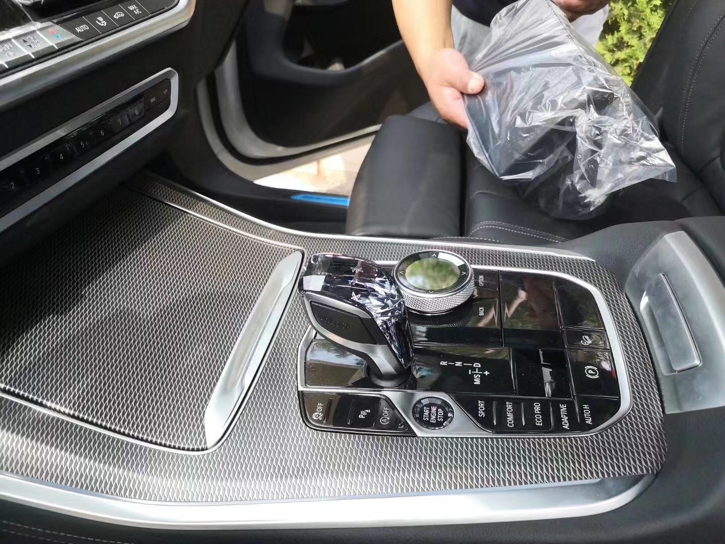 档把非常精致,表面做了棱形切割,如同水晶般的闪耀,依旧是电子档。左侧是辅助驾驶功能、一键启动、驾驶模式调节按键,右侧是iDrive旋钮,尊享M套装版车型旋钮后方还带有空气悬架调节按键。这台40i M动版样车搭载的是3.0T L6涡轮增压发动机,最大功率340马力,缸内直喷供油,加油要95号的。峰值扭矩450牛米,在1500转的时候就能达到,账面数据比奔驰GLE400还高。传动匹配的是8挡手自一体变速箱,采用全时四驱,带多片离合器式中央差速器。这台X5官方公布的0-100km/h加速成绩是5秒5,实测5秒4,跟低配保时捷718 (配置|询价)差不多,比4.0T V8的GLE500都要快。
