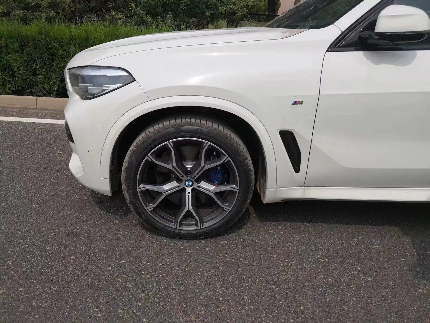 侧面看过去,新一代X5的线条更为有型,带点肌肉感,腰线也不是一条直线了,在后门处有明显的上挑,在门板下方区域也有一道折线勾勒。轮眉看着很明显,在前轮后方翼子板处设计了一个通风口。尺寸方面,这一代X5规格为4930*2004*1776,轴距2975,比上一代产品做了加长,宽度也增加了几公分。这台40i M动套装版轮毂是双五幅造型,轮胎规格为前275/40 R20,后315/35 R20,这个配置相当高了,尤其是315的后轮胎宽,很少有SUV能比。