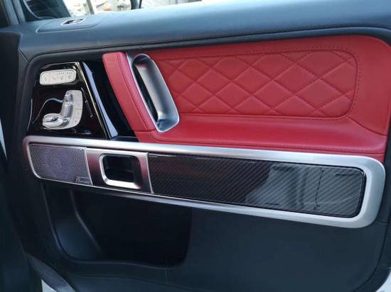 2019款奔驰G63极具有诱惑力。方向盘采用了AMG平底式全新造型的运动方向盘搭配银色碳纤维设计彰显时尚。中控台采用大量银色金属亮条搭配与中央手扶箱融为一体,虚拟的仪表盘与中控12.3英寸液晶屏融为一体颇具时尚气息,中控涡扇式空调出风口也颇具设计感,车内的高档皮革内饰以及标有V12钻石图案设计的座椅、车门面板和脚垫,无不彰显着车主的尊贵身份。