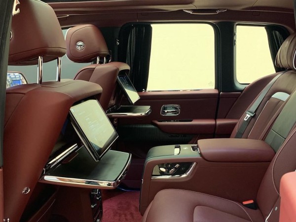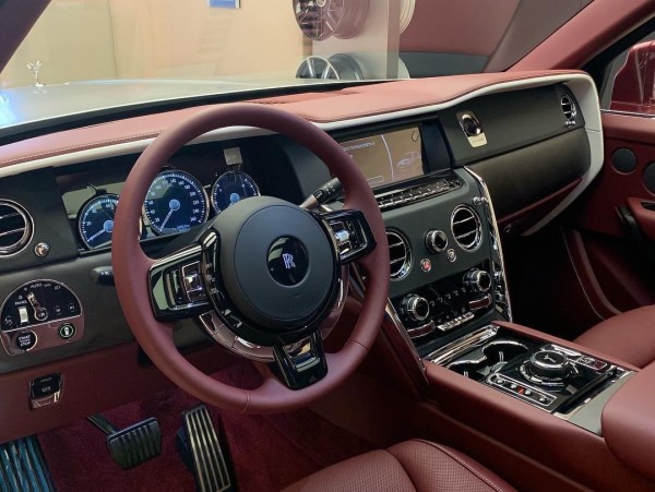劳斯莱斯库里南的内饰遵循了劳斯莱斯一贯的设计风格,造型经典复古但不失科技感,大量实木饰板的采用,提升了内饰的档次感。而大面积真皮包裹的设计,则成功的营造出奢华舒适的内饰氛围。仪表盘的设计较为古朴,内部指针清晰可见,外圈还配备有劳斯莱斯珠宝般的装饰环。方向盘沿用了经典的三辐式造型,但是整体设计更加小巧、厚实,并且内部包裹有可加热的柔软材质。
