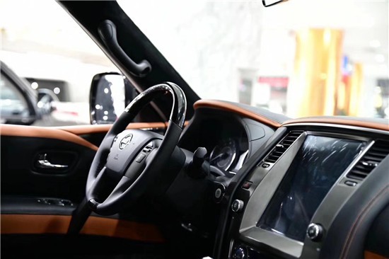 19款日产途乐Y62中控部分的设计比较具有豪华感,标准日系豪华车的风格,BOSE音响是很多中高端车所选用的,音响效果不会让你失望。方向盘为电动调节,左侧有很多控制键,比如大灯清洗、反光镜调节等等。中控风格保持了日系车一贯的细腻,不过手套箱并没有包裹绒面有点遗憾。中东版尼桑途乐Y62中控部分的设计比较具有豪华感,标准日系豪华车的风格,BOSE音响是很多中高端车所选用的,音响效果不会让你失望。