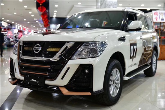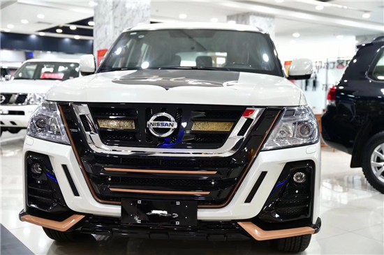 2019款尼桑途乐Y62家族最新设计语言下的首款车型,尼桑途乐Y62的整体造型看来极具轿跑风格,彰显出了极强的运动化元素。新车的前进气格栅采用了复杂的设计元素以及线条轮廓,相比之下,其前大灯组的造型则十分简洁,二者搭配使得前脸造型个性且耐看。则为该车增添了一丝的未来感。