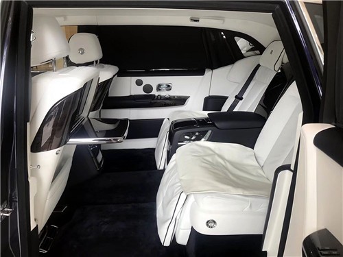 2019款劳斯莱斯幻影后排才是重中之重,电动折叠板和后排影院系统被巧妙的隐藏在前排座椅的椅背后,只需轻触按钮,便可以自如收放桌板和影院系统,带来完美的剧院体验。后排中央固定扶手做了重点优化,其中国可容纳带有威士忌酒具的酒柜、香槟酒具和冷藏箱,方便乘客畅快交谈,后排座椅角度可以任意调节,这一设计让客户无需转头便可视线自如交流。整个车厢内饰全部以最精美的高档材料装饰,使车内极具触感。