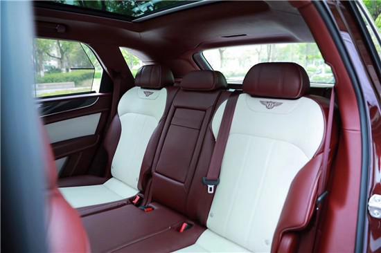19款宾利添越后排宽大的座椅舒适性表现如前排一样优越,座椅质地也很柔软,包裹性和支撑性都很强,刺绣标示清晰夺目。来到后排,奢华的工艺依旧逐一体现,宽大的座椅舒适性表现如前排一样优越。五座版座椅空间非常灵活,后排靠背可按比例放倒。正常储物空间为430升;遮物帘收起时为590升,继续放倒座椅,最大空间可达到1300L。地板采用全绒面材质包裹,再一次提升了豪华质感。