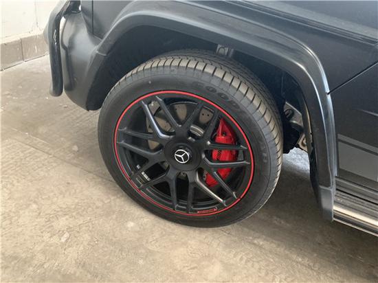 全新的直瀑式进气格栅可以说是家族最新的设计风格,也是在新车外观造型上与奔驰系列产品差异化最明显的地方。其中AMG系列的直瀑式格栅在新时代下的鼻祖可以说是AMG GT车型,它内部由12根竖置镀铬饰条组成,同时新车的保险杠进气口相比G 500造型也更具有攻击性。此外,新AMG G 63最大的轮圈尺寸提供22英寸可选,进一步提升了它外观造型的彪悍程度。展车不仅采用了全新的车身涂装,还搭配了红色的轮圈装饰,更加个性。