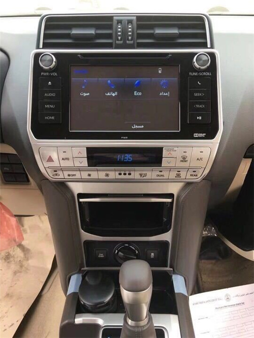 19款中东版丰田霸道2700车厢内充裕的车厢空间,带来非凡舒适享受。丰田霸道2700仪表盘至是单纯的双筒造型,没有多余的点缀,中间的液晶显示屏简单易懂。内部空间的舒适性展现着普拉多除了硬汉之外的另一个形象,方向盘造型新颖,较为粗壮,上面布置了音响、电话等控制键,操控起来手感出众。