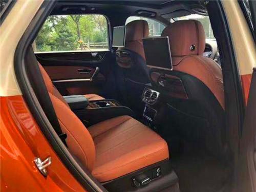 19款宾利添越4.0T的后排座席,有太多理由令您流连忘返,无论是畅行之际划过车窗外的美好景致,抑或在车内娱乐系统中探寻无尽妙趣。宾利添越前排座椅头枕后部安装的10.2寸娱乐平板电脑,连接座驾娱乐系统,令后排乘客于指间从容触及愉悦之源。宾利添越通过移动平板电脑端的便利触控,您可即时调用车内娱乐系统提供的任何精彩体验,您亦可佩戴蓝牙,以影音享受开启专属于自己的世界。