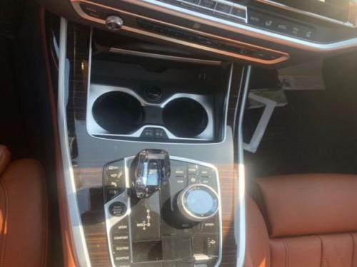 19款宝马X7内饰部分,宝马X7采用最新家族式设计语言,使用大量真皮、木纹饰板进行包裹。配备12.3英寸带有注意力检测的全液晶仪表和12.3英寸悬浮式触控显示屏。空调出风口与温度显示屏、实体功能按键结合在同一区域,并使用银色装饰条进行点缀。下方盖板下方为带有加热、制冷功能的杯架,全新的水晶电子挡杆造型十分精致,进一步提升了车内的豪华氛围。