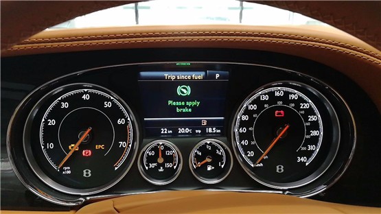 全新进口宾利飞驰的中控台造型更偏复古,而用料则是这台车最大的亮点。中控台大面积的胡桃木饰板仿佛玉石一般润泽,让人非常舒心。三幅式方向盘由胡桃木与真皮组成,握感相当棒。仪表盘内使用了大量的镀铬边框,表盘设计较为复古。推拉式的空调出风口,开闭之间的阻尼适中,手感很棒,精致的镀铬工艺及造型更是让人欲罢不能。