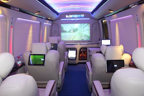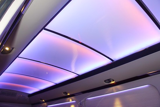 在内饰设计的其他方面,丰田考斯特12座改装商务车充分注重内饰灯光的考虑。因为丰田考斯特商务车车身长7米,较为宽敞的内饰空间让丰田考斯特改装商务车原车所搭配的灯光显得有些缺失,所以丰田考斯特在改装的过程中充分考虑了灯光照明的需要。车顶上可以选择安装三个LED顶灯,满足车内照明的需要。A380航空顶灯也可以展现出不同的色彩的设计。而这样的设计恰恰让丰田考斯特改装商务车的内饰氛围显示的更加独特而与众不同。