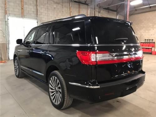 全部采用深色设计的玻璃巧妙地隐藏了C柱和D柱,让车窗整体呈环绕式,突出豪华感的同时也保证了车内乘员的最佳视觉和私密性。尾部贯穿式的尾灯目前已经成为各个豪华品牌纷纷效仿的潮流设计,不过全新林肯领航员Navigator的尾灯依然能形成独特的辨识度。有趣的是“鲨鱼鳍”式的电线被置于车顶前方,这也是为了确保信号接受度最佳,所以也不需要墨守成规了。
