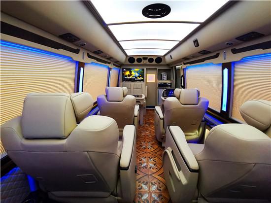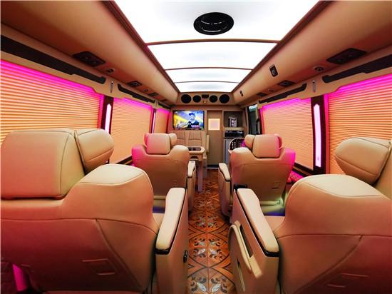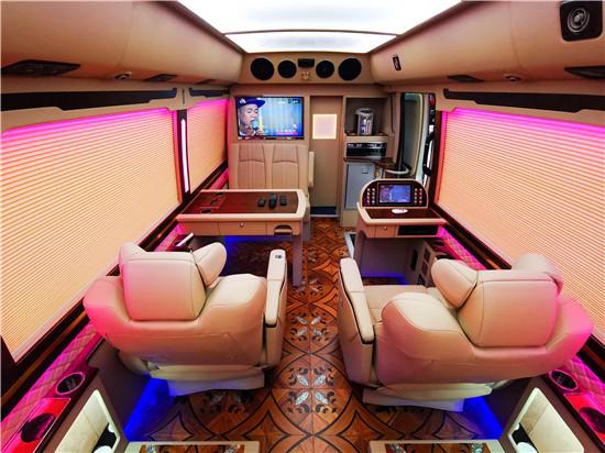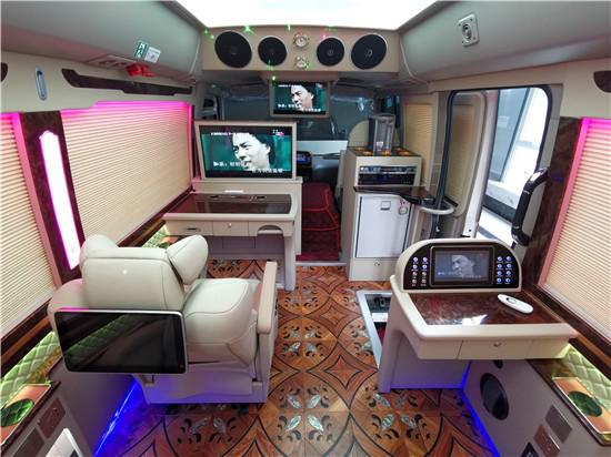丰田考斯特改装商务车10座在内饰的设计上已经说过有很多不同风格的设计方案,丰田考斯特改装商务车10座作为移动的办公室来说,充分可满足了我们对于商务旅行以及商务办公的需要。舒适的座椅,可旋转的豪华首长席座椅,配备高档的办公桌,车内车载冰箱为我们的旅行提供方便,作为移动的办公室我们还可以安装文件柜,保存商务出行时所需的资料。