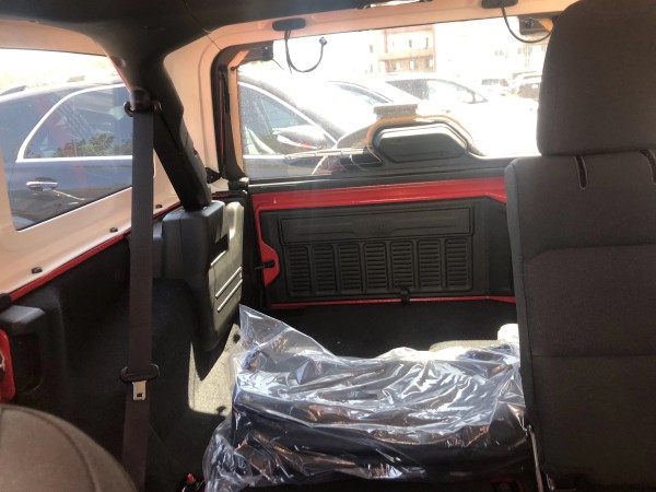 2019款JEEP牧马人依旧保持了高高在上的车身结构,视觉上给人异常庞大的感觉,然而它的长宽高则是4882*1894*1848mm,轴距则是3008mm,这对于中大型SUV来说并不是非常夸张的参数,但是相比牧马人普通型号还是要大不少,主要还是依据越野用途设计。车身侧面是方正平直的造型,同时可以看出轮毂镂空面积变大。到店的是四门版,肯定要比两门版的更加方便,如果生活用车也比较适合。