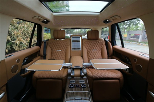 路虎揽胜皇家一号加长版外观最突出的还要重点落在“长”字上,整体车架采用1/4英寸高张力强化钢管打造而成,车底以及车顶采用的是14号防锈强化钢板,整个车体的安全性明显增强,以及5.0的排量500多匹的马力,让您置身车内尽可享受舒适奢华的贵宾式待遇。