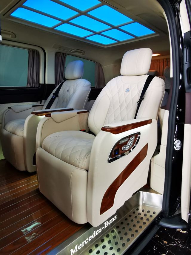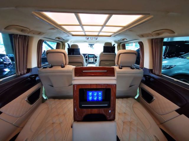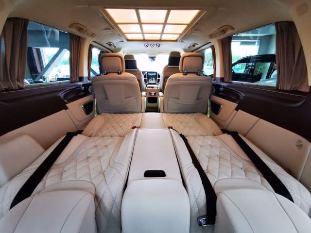 19款进口Metris改装后座三连排电动沙发座椅,向后拓展可一键平躺变身奢华大床,商务出行可作为休憩佳所,合家出游首选。进口奔驰麦特斯九宫格天窗,随时随地赏云赏雨赏月,天窗的露出让你时刻感受惬意、放纵的自由,满足商务接待、洽谈、出游等的所有需求使用。