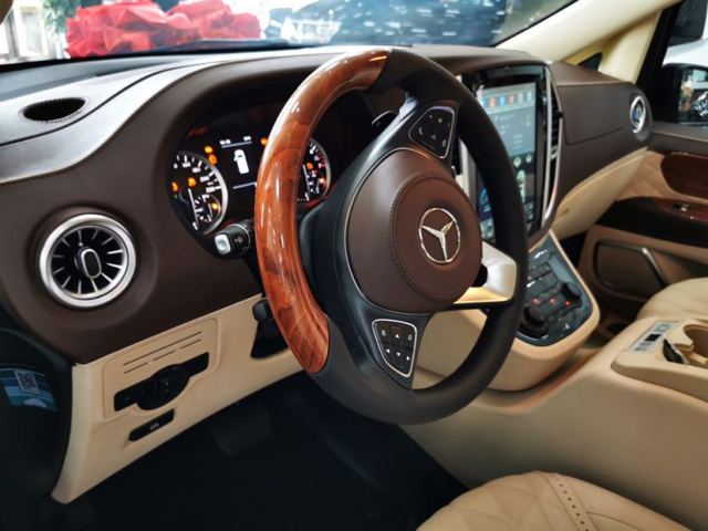 19款进口奔驰Metris采用意大利进口高级NAPPA真皮座椅、高回弹海绵坐垫,提供柔软舒适的依靠感,更显高档;电加热通风系统、电动按摩系统等功能,更快的缓解旅途疲劳,享受舒适之旅;三面六项调节蝴蝶枕,随心调节,总会找到适合姿势,彰显人性化设计。奔驰Metris是采用劳斯莱斯经典米色系,桃木真皮方向盘,仪表盘真皮包覆,触感极佳,接缝处缝合紧密。全车真皮座椅及软式内装,舒适度恰到好处。真实、高级材质,才能铸就进口Metris高档舒适的乘坐感。