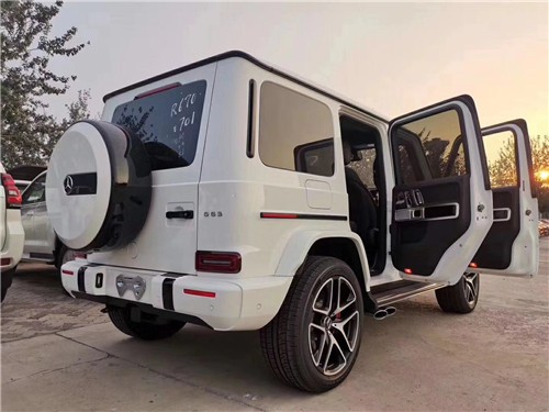 2019款奔驰G63 (配置|询价)虽然外观风格未变,大灯复古的圆形造型。但最新款奔驰G63还是在大灯下方加入了时下最为流行的日间行车灯。眼前这辆“方盒子”已经不屑于用那一身硬功夫横穿雨林,暴走沙漠了。奔驰G63新增一组后桥,车身加长并构造出一个开放式的行李空间,轮距也因此得到涨幅明显的扩展,以保证过弯时候的稳定性。