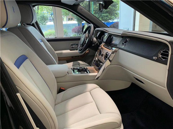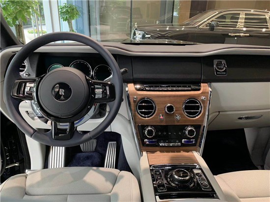 库里南的内饰遵循了劳斯莱斯一贯的设计风格,造型经典复古但不失科技感,大量实木饰板的采用,提升了内饰的档次感。而大面积真皮包裹的设计,则成功的营造出奢华舒适的内饰氛围。仪表盘的设计较为古朴,内部指针清晰可见,外圈还配备有劳斯莱斯珠宝般的装饰环。方向盘沿用了经典的三辐式造型,但是整体设计更加小巧、厚实,并且内部包裹有可加热的柔软材质。