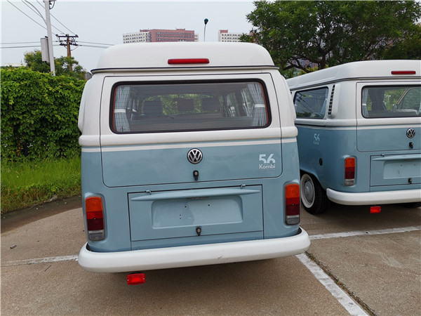 大众T2复古巴士Kombi56周年限量纪念版外观和内饰采用经典天蓝色装饰,外观自不用说,经典复古萌萌哒,内饰座椅布局是3加3加3形式。大众T2复古巴士Kombi56周年限量纪念版空间没的说,长宽高:4505*1720*2040只要您有C照本驾驶证也能开,轴距2400mm。