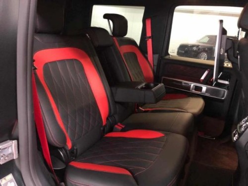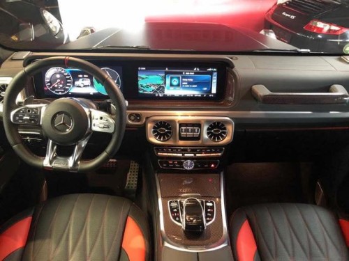 19款奔驰G63较之于现款车型,它的内饰发生了巨大的变化,融入了不少现款奔驰S级 (配置|询价)、E级的设计元素,从而变得更加豪华,而家族式的连屏设计则凸显了车内的科技感。当然了,经典的“三把锁”按键自然不会缺失,并且设置在中控台最为显眼的位置。而Edition one先行特别版内饰得碳纤维是黑红相间,而且座椅是菱形格座椅!