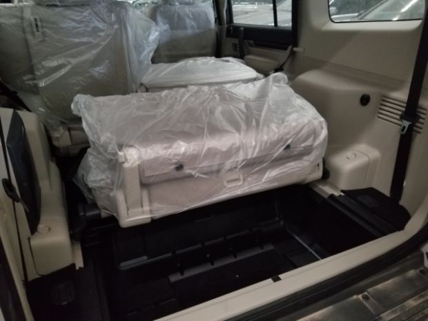 中东版帕杰罗是5门7座设置,因为后挂备胎的原因,后尾门为平开式,第三排座椅可以完全折叠,隐藏在地板上,得到一个平整的后备箱空间。注:咨询热线在文章末端 同微信。