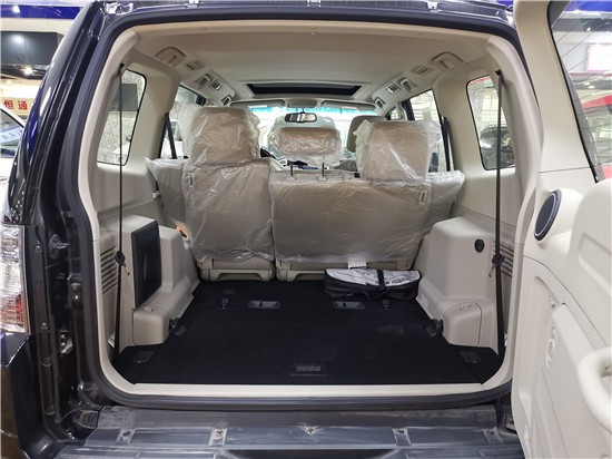 19款三菱帕杰罗V97是5门7座设计,因为后挂备胎的原因,后尾门为平开式,第三排座椅可以完全折叠,隐藏在地板上,得到一个平整的后备箱空间。提供了多功能且宽敞的内部空间,全尺寸七座及置物空间选择,让您享受工作和日常生活。
