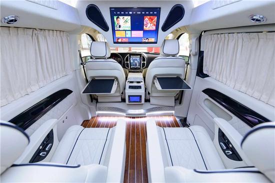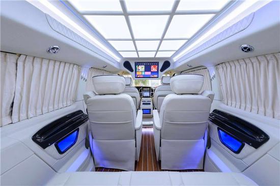 相对而言在奔驰威霆改装的过程当中,就能够有着全新的产品基础,在这其中会对车内的座舱来进行大幅度的升级,加装了现在的数字卫星电视以及按摩座椅和车载冰箱等豪华配置,升级之后的座舱更加的豪华,同样也会让我们的出行更加有面子。
