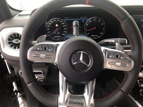19款全球限量G63 Edition1配置 :9速AMG变速箱, 黑色AMG独家黑红双拼内饰 干椒红碳纤维饰件 红色安全带 可调阻尼底盘 主动车道保持 主动刹车辅助 AMG红色卡钳 雷达测距 柏林之声3D音响 电动天窗 风挡玻璃加热 超细纤维内饰(鹿皮顶) 64色氛围灯 360环影 停车辅助(中规智选套装,选装加24200) 几何多光束LED大灯(中规G63选装加19000元) AMG暗夜包 增强座椅舒适包(多轮廓座椅,通风按摩),AMG高性能Nappa真皮方向盘 AMG驾驶包时速240公里更加运动和灵活的驾驶体验(底盘更运动 更灵活最高时速更高,中规无法选配) 选配增值包(23500)包括以下 黑曜套件[外后视镜、备胎环、保险杠、外防黑色护栏] 有色指示灯、头灯和尾灯 22“AMG轮毂(哑光黑与红色AMG外部运动条纹) AMG高级内饰黑钻石缝线与红色拼接 前座与按摩、加热、通风前座 AMG性能方向盘和仪表盘 黑色Nappa皮革方向盘与红色拼接, 地垫黑色与AMG标记和红色拼接;19款奔驰G63磨砂黑报价!