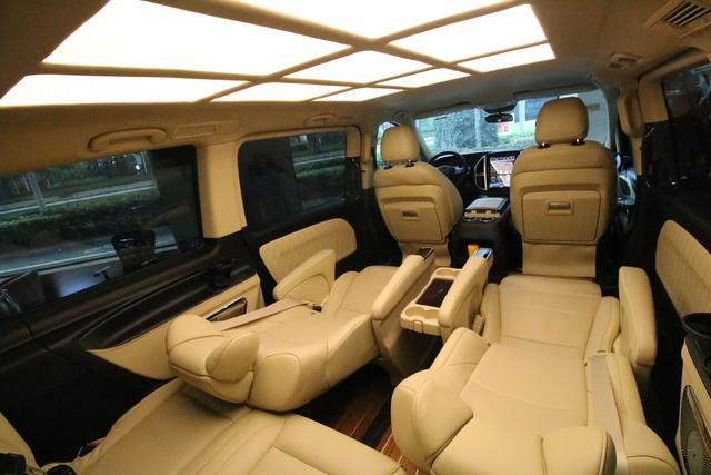 配置:7座,中文导航,中央竖屏式大屏导航,中央隔断带升降液晶电视、全车BOSE音响、全新升级版航空座椅,第二排通风加热按摩可旋转座椅,第三排电动可放平座椅,双侧电动门,高级氛围灯式车内星空灯