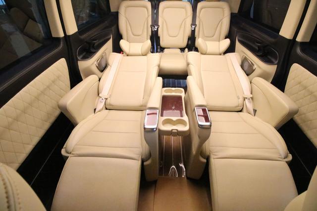 全新奔驰Metris提供了豪华真皮电动单人座椅,配备双侧扶手、豪华头枕、腿托以及脚托,座椅具有加热、通风、按摩等舒适功能,为乘坐者提供最舒适的乘坐感受。全新Metris可提供1,030升的行李舱空间。
