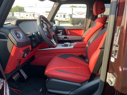 内饰方面:从内饰来看,新款奔驰G500级也进行了彻底的改造,这给了它与其他奔驰系列的豪车分庭抗礼的资格。较之于现款车型,它的内饰发生了巨大的变化,融入了不少现款奔驰S级 (配置|询价)、E级的设计元素,从而变得更加豪华,而家族式的连屏设计则凸显了车内的科技感。当然了,经典的“三把锁”按键自然不会缺失,并且设置在中 控台最为显眼的位置。