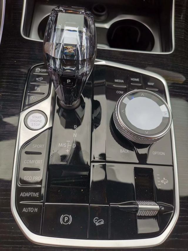 宝马一改以往的商务风、动风,展现出来的是科幻一般的场景,多功能方向盘的按键操控区域周围加装了液晶设计,仪表盘和显示屏就更不用多说,仅仅是灯光效果,就令人为之一振。还有一个亮点就在于水晶档把,在氛围灯的照射下更加科幻,完全不是同级别能够相比的。