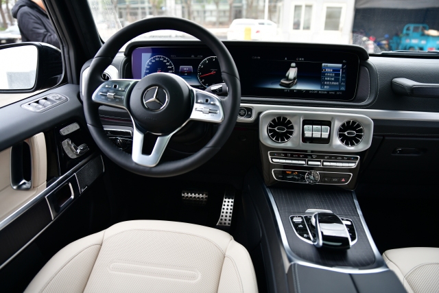 19款奔驰G550级最大的变化全部集中在内饰方面,家族化的设计语言随处可见,双12.3英寸屏幕非常震撼,让原本复杂的内饰简约了不少。不过“图腾”三把锁开关仍然是全新一代G级的核心,位置没有改变。此外,全新的三辐式多功能方向盘依然配备有奔驰双拇指控制(Dual Thumb Control)系统。