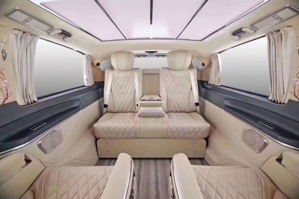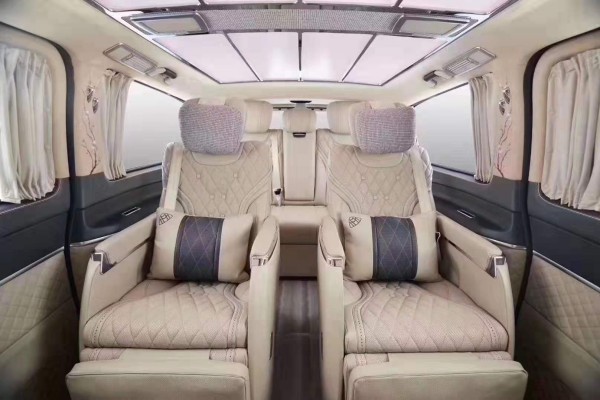 基于对奔驰V260级车型几十年的定制经验和独到的审美哲,将经典之笔更融于乘客舱座椅的设计和严选,二排座椅拥有:十六项专利发明,十五项调解功能,十四个人体穴位按摩点,180度平躺休息,双节水平腿托,20000次测试标准,并设有特殊纳米技术记忆泡棉,手机自动和半自动充电系统等功能。