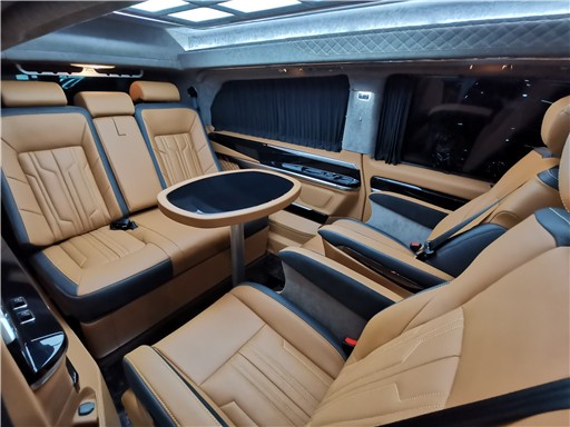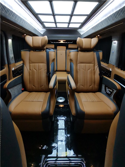 奔驰威霆改装最后排为两个独立航空座椅,他们不只座面宽大舒适并且内部填充高密度海绵久坐不变形,座椅能够向后进行旋转便利与后排乘员互动沟通,并且具有完美的衬托感!具有通风、加热、气动按摩等功能以及腿拖,通过座椅旁边面对开关进行操控调理,能够确保极致舒适的乘坐领会。迈巴赫9宫格顶灯,调配车顶天窗和四周气氛灯饰,打造了多场景照明系统。
