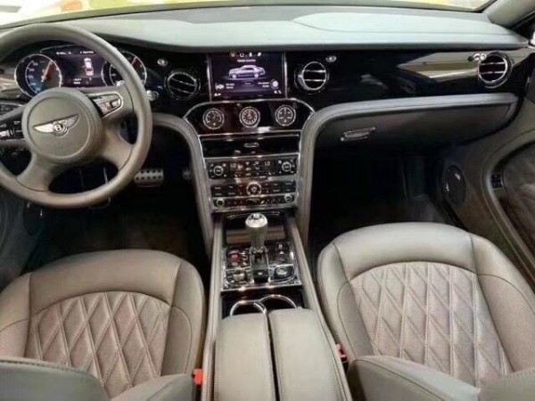 进到车内,满满的奢华气息,仪表台全部采用真皮进行包裹,并带有暗色伯尔核桃木实木饰条。多功能方向盘可以电动调节,还带有换挡拨片功能,中控区域,慕尚采用了大量的银色金属装饰,还带有三块表,分别是油表、失真和温度表。座椅方面,不仅真皮触感细腻,就连缝线都很精致,因为这些都是纯手工进行缝制的,而且它的头枕上还带有宾利徽章刺绣的,直观的彰显了它的品牌身份。