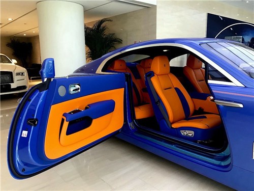劳斯莱斯魅影在劳斯莱斯品里,也被称为最动感的产品,双门设计,这个双门是劳斯莱斯倒开门的设计,下车的时候非常有范,配合庞大的车身和溜背的车顶,加上鲜艳的配色,档次立马就有。我个人也任务劳斯莱斯魅影也是市面上所有的GT跑车里面最有气质的。