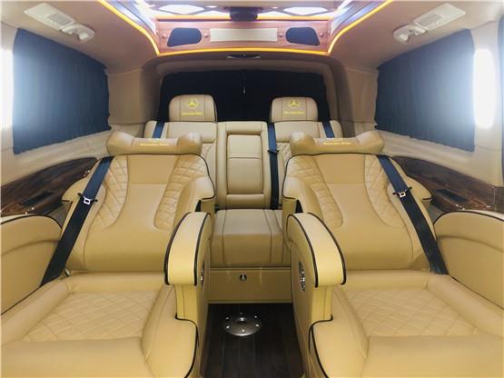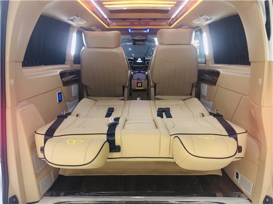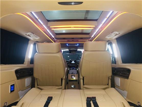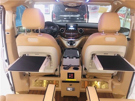 后排座椅支持180度平躺;为您的长途出行打造临时床铺奔驰V260L七座版改装商务车高顶隔断礼遇版,七座车型的第三排沙发,支持一键放平或者收起,随时为您的长途出行打造足够宽敞舒适的卧铺,简约时尚的氛围灯与豪华柚木地板交相辉映,是对精致移动生活的皮质追求!