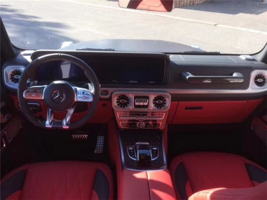 19款全新G63内饰方面,新G63保留了新G500的整体设计,除配色差异外,新车还换装了全新造型的平底式AMG动方向盘,其两侧配以打孔皮质包裹,下部镀铬装饰的造型也与新G 500明显不同,看上去十分战斗。此外,全液晶仪表盘+中控大屏的双12.3英寸屏幕设计在新车上也没有缺席,营造出了浓郁的科技感。