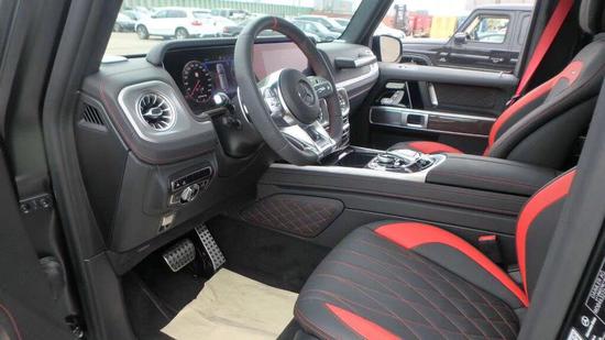 配置:金属漆,9速AMG变速箱,黑色AMG独家黑红双拼内饰,干椒红碳纤维饰件,红色安全带,可调阻尼底盘,主动车道保持,主动刹车辅助,AMG红色卡钳 ,雷达测距,柏林之声3D音响,电动天窗,风挡玻璃加热,超细纤维内饰(鹿皮顶),64色氛围灯,360环影,停车辅助(中规智选套装,选装加24200),几何多光束LED大灯(中规G63选装加19000元),AMG暗夜包,增强座椅舒适包(多轮廓座椅,通风按摩),AMG高性能Nappa真皮方向盘,AMG驾驶包时速240公里更加运动和灵活的驾驶体验(底盘更运动 更灵活最高时速更高,中规无法选配)