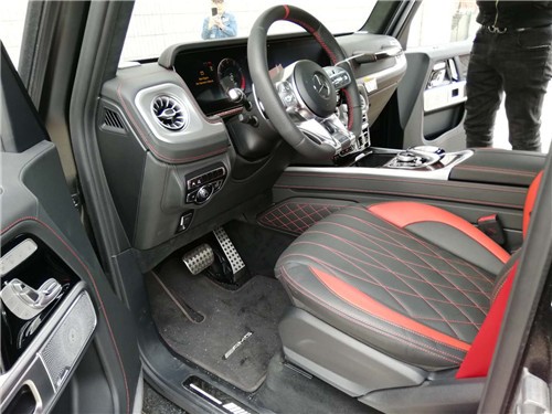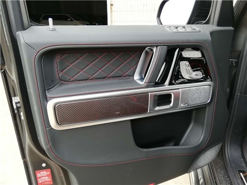 内饰设计:档次、质感和科技配置都明显提升全新奔驰G级 (配置|询价)的内饰相比老款有了明显的提升,采用了奔驰最新的双屏幕式设计,全液晶仪表盘和中控台屏幕都达到12.3英寸。同时内饰质感和工艺都有了很大的进步。全新的AMG G63有着强大的驱动系统,还有新开发的AMG RIDE CONTROL悬架、AMG专用变速器模式、宽屏驾驶舱、全新内饰,而标志性的AMG驾驶性能则属于4.0L V8双涡轮增压发动机,当然还有9AT、全轮驱动(40:60)、三把差速锁、双叉臂独立前悬架、自适应可调节阻尼来为其锦上添花。19款奔驰g63AMG:22轮毂,无钥匙启动,内饰NAPPA黑,NAPPA多功能动方向盘,LED高性能大灯,防眩目后视镜,后窗加热,后挡风玻璃雨刮自动启动功能,雨量传感器雨刮,隔热隔音夹层玻璃,前排座椅电动调节,驾驶员和前排座椅加热,后排座椅加热,前排座椅和头枕带记忆功能,主动车道保持辅助,天窗,不锈钢包,倒车影像,镀铬散热器饰板,12.3宽屏。