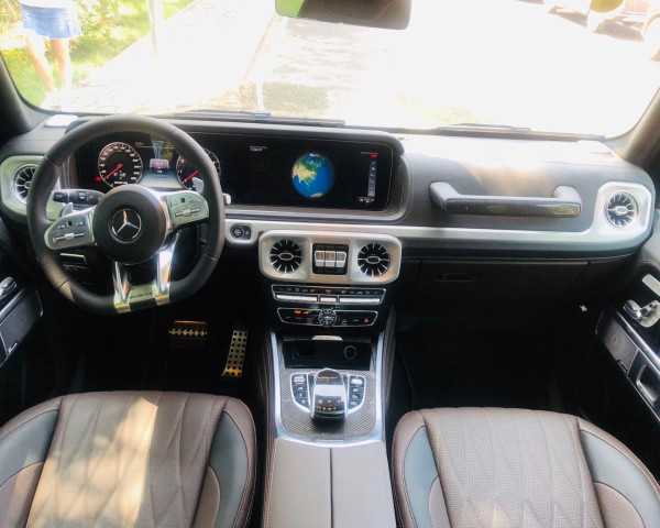 全新G63内饰保留了新G500的整体设计,除配色差异外,新车还换装了全新造型的平底式AMG动方向盘,其两侧配以打孔皮质包裹,下部镀铬装饰的造型也与新G 500明显不同,看上去十分战斗。此外,全液晶仪表盘+中控大屏的双12.3英寸屏幕设计在新车上也没有缺席,营造出了浓郁的科技感。